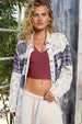 This shacket features a charming lace detail along the button-down front, adding a touch of femininity to the look. The contrast plaid patchwork offers a unique and trendy twist to this floral piece. It's a versatile garment that can be dressed up or down for various occasions. Embrace a stylish and eclectic vibe with this button-down lace detail floral shacket.
